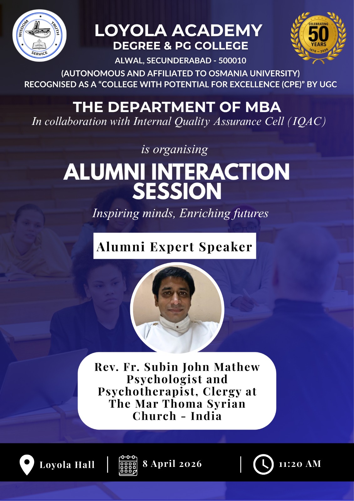 Loyola Academy was granted Autonomous status in 1992 for Degree courses and PG courses in 2010. Appreciating the achievements and qualitative pursuit of Higher Education needs, UGC awarded Loyola Academy “A College with Potential for Excellence” (CPE) in 2008.
